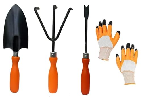 Aarav Garden Tool Set – 4 Pcs (Big Shovel, Cultivator, Weeder, Gloves) | Terrace Gardening Accessories | Gardening Tools Kit for Home Gardening Tools Set