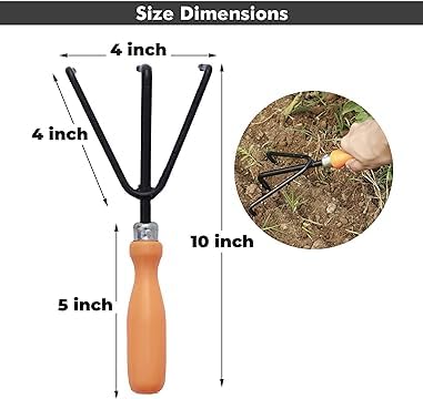 Material: Made of iron, the cultivator, trowel and Fork is made of high-quality stainless steel. Metal parts are black powder coated for corrosion and rust protection