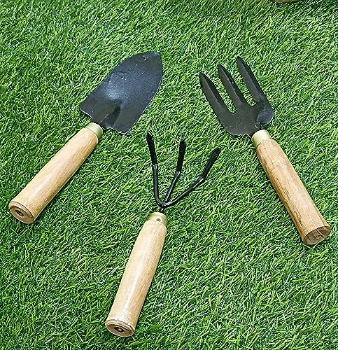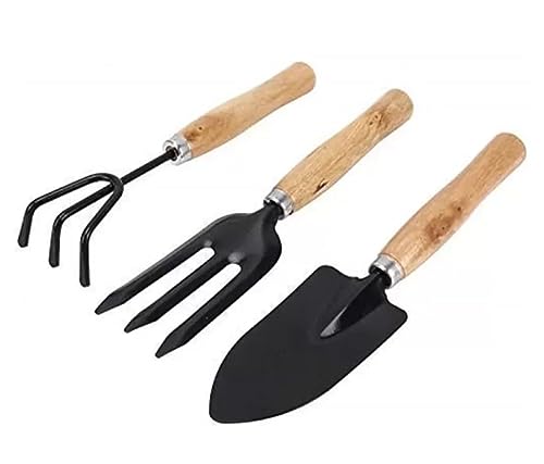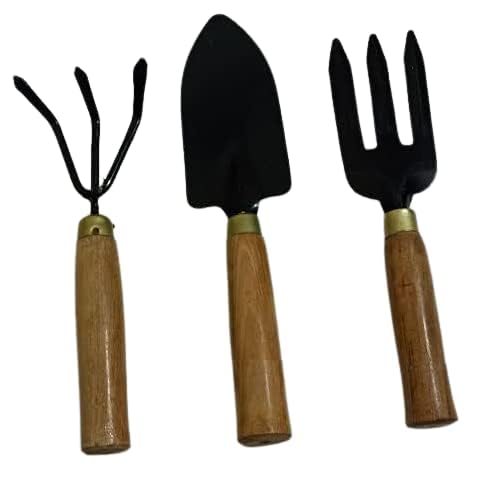 Aarav Mini Garden tools 3-Piece set. includes trowel, cultivator, fork, Ideal for a variety of tasks including digging, weeding, loosening soil, aerating, transplanting and more. Small and light weight for easy and convenient use. Perfect for Succulent Cactus Herbs or Other Indoor Miniature Plants. Material:Made of wood and iron,covered with anticorrosive paint,polished wooden. Solid metal construction with smooth-able wooden handles. Rust Proof The Perfect Tool Set for All Your Gardening Needs.