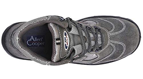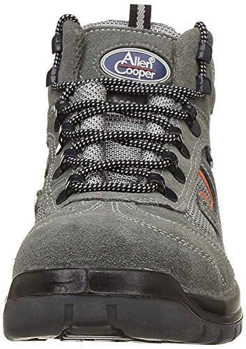 Allen Copper is the flagship brand of super house group, a truly Indian multinational company with presence in more than 35 countries with an pride of being awarded as the best leather exporter of the country for consecutive 3 years in a row, from the desk of our honourable president of India and from the ministry of industrial affairs. The brand Allen cooper has a vast legacy of manufacturing and exporting of quality leather footwear, safety shoes, sports shoes, fashion and utility products and accessories such as belts, bags, wallets, portfolio bags, trolley bags and many more such need driven utility products. All Allen cooper safety shoes are made out of genuine leather uppers, moisture wicking lining, anti skid properties, strong laces and ISI mark as standard features. This high ankle safety shoe model from sports series is made with buff suede genuine leather upper for breathability during long hours of work and tough working conditions. Sporty looks, directly injected double density double colour PU sole, steel toe cap to withstand impact resistance over 200 joules, anti skid design and antistatic are some of the unique features of this model of safety shoes.