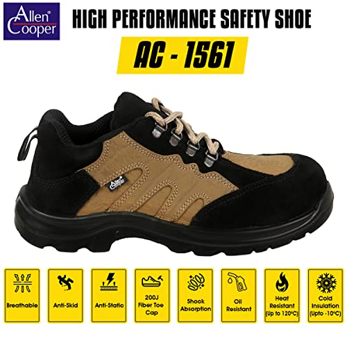 “Allen Copper is the flagship brand of Superhouse group. A truly Indian multinational company with presence in more than 35 countries with an pride of being awarded as the best leather exporter of the country for consecutive 3 years in a row, from the desk of our honorable president of India and from the ministry of industrial affairs. The brand allen cooper has a vast legacy of manufacturing and exporting of quality leather footwear, safety shoes, sports shoes, fashion and utility products and accessories such as belts, bags, wallets, portfolio bags, trolley bags and many more such customer satisfaction and need driven utility products. All allen cooper safety shoes are made out of genuine leather uppers, moisture wicking lining, anti skid properties, strong laces and isi mark as standard features. AC 1561 Special Edition with nubuck leather upper and 200J Non-Metallic Composite Toe Cap. These pair of shoes have been designed as per the latest trends in footwear fashion. It features a lace up closure. The shoes are made from suede with high quality durable fabric upper and provides comfort to your feet. The shoes feature a moisture wicking breathable textile lining. The lace-up closure allows the shoes to have a snug fit balanced with comfort. The flexibility of the laces maintain a firm grip to provide the right amount of support to your feet. “