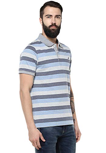 AMERICAN CREW Polo Collar Cotton Poly Striped T-Shirt for Men