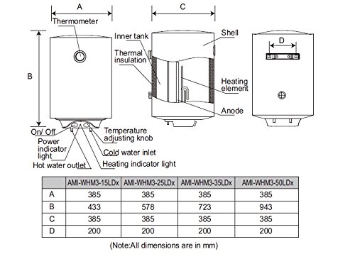 This water heater works effectively to give you only the best performance. It comes with 3 different power modes such as 800W, 1200W and 2000W.