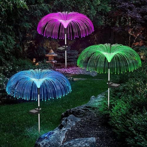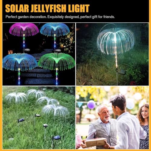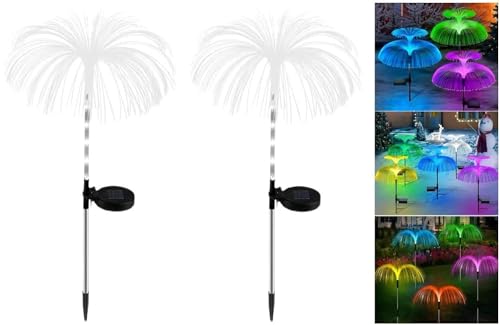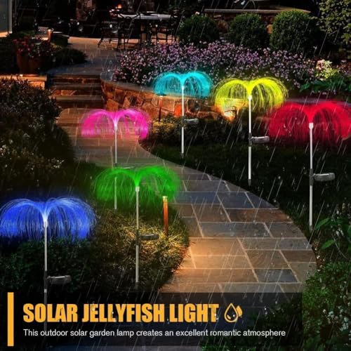 Solar Garden Light IP65 Waterproof LED Jellyfish Shape Lamp Optical Fiber LED Solar String Light 600mAh for Yard Patio Garden Gazebo for Party Wedding Birthday