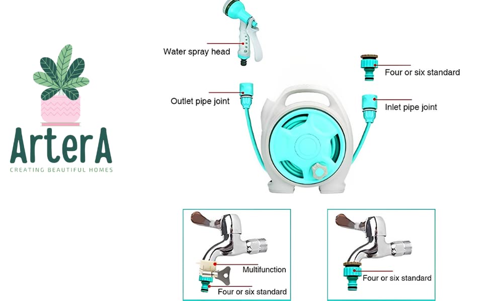 【LIGHT WEIGHTPORTABLE 】 The retractable hose reel rack is made up of ABS case and PVC hose, which is easy to carry and move. It’s also waterproof and convenient to clean. Don’t worry about it makes your car or house dirty. One hand can pick it up. You can take it out or for travelling.