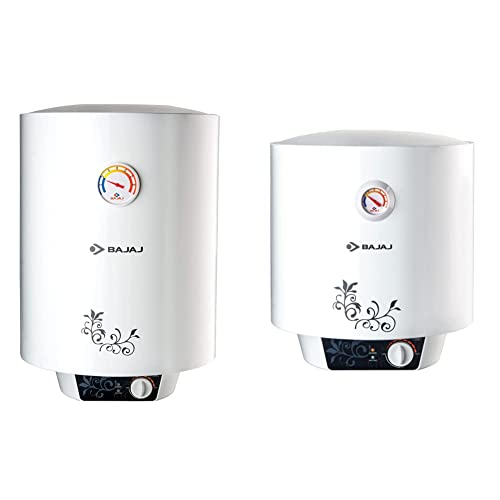Bajaj New Shakti Storage 15 Ltr Vertical Water Heater, White, 4 StarThe water heater is available in 10L, 15L and 25L variants. 2000 watts model. Suitable for high-rise buildings (8 bars). Powder coated metal body. Adjustable thermostat. Magnesium anode for extra protection from corrosion and leakage. Unique temperature indicator dial. Rated Voltage: 230V, AC ; Rated Frequency (HZ): 50 ; Phase: Single ; Rated Wattage (in watts): 2000 ; Mounting Type (Vertical/Horizontal): Vertical. Heating Element (copper tube): Tubular TypeBajaj New Shakti Storage 10 Ltr Vertical Water Heater, White, 4 StarThe water heater is available in 10L, 15L and 25L variants. 2000 watts model. Suitable for high-rise buildings (8 bars). Powder coated metal body. Adjustable thermostat. Magnesium anode for extra protection from corrosion and leakage. Unique temperature indicator dial.