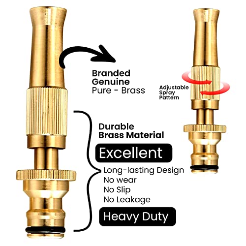 - ✔ HEAVY DUTY HOSE NOZZLE — This hose nozzle is made of solid high-grade brass. rustproof, sturdy and long-lasting.