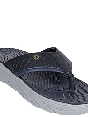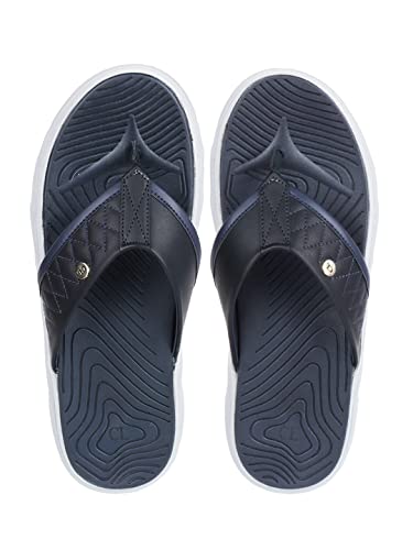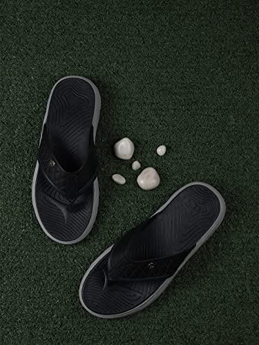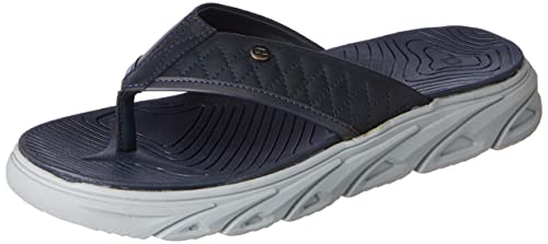 A pair of Open Toe Men’s Thong Sandals has regular styling, Slip On Closure detail, Synthetic upper,Cushioned footbed,Textured and patterned outsole.