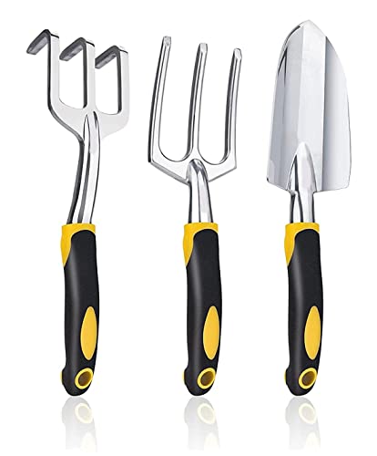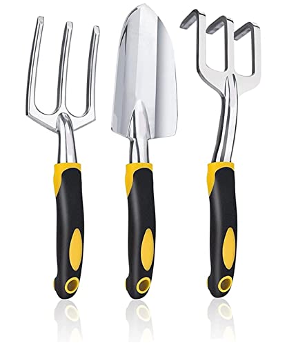 These are made of heavy-duty cast aluminum and have high hardness, making them durable and not easy to rust and break. The polished cast aluminum blades are shiny, rust-proof, and easy to clean. This full-size adult garden toolset uses advanced alloy materials to effectively withstand harsh surface conditions and can withstand the hardest roots, rocks, and soil.