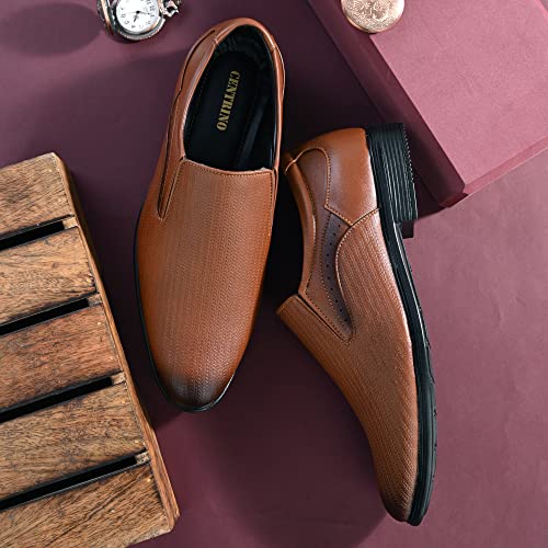 CENTRINO MATERIAL: SYNTHETIC MATERIAL. THESE SHOES ARE MADE UP OF HIGH QUALITY SYNTHETIC MATERIAL STAYS STRONG AND DURABLE – MEANING THE SHOES WILL LAST MUCH LONGER. LIFESTYLE: FORMAL / BUSINESS. PAIR THESE STYLISH CENTRINO SHOES WITH YOUR SHIRT & TROUSERS FOR THAT PERFECT LOOK. OFFICE WEAR, OFFICE SHOES, FORMAL SHOES, SLIP-ON, BUSINESS SHOES. CLOSURE: SLIP-ON. CENTRINO SHOES ARE HAND-CRAFTED FOR THAT PERFECT FIT. PERFORATED INSOLE LETS AIR PASS THROUGH THE MATERIAL. THIS IS GREAT FOR LEATHER SHOES BECAUSE THE MATERIAL LETS AIR IN TO COOL YOUR FEET AND STOP THEM FROM SMELLING. FIT: COMFORT FIT. CENTRINO ENDORSES STYLE THAT STRIKES A FINE BALANCE BETWEEN THE CLASSIC AND THE MODERN, THE DISCREET AND THE BOLD WITH GOOD TASTE BEING THE ONLY CRITERION FOR SELECTION. CARE INSTRUCTIONS: ALLOW YOUR PAIR OF SHOES TO AIR ON A REGULAR BASIS. THIS HELPS THEM RETAIN THEIR NATURAL SHAPE; DRY SHOES AT ROOM TEMPERATURE ONLY. EXCESSIVE EXPOSURE TO SUN, WILL CAUSE THE LEATHER TO SHRINK, WRINKLE, HARDEN, DRY, AND CRACK. USE SHOE BAGS TO PREVENT ANY STAINS OR MILDEW; DUST ANY DRY DIRT FROM THE SURFACE USING A CLEAN CLOTH. FOR MENS