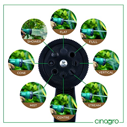 Multi-function rotary nozzle: Equipped with a high-quality 8-pattern rotating nozzle with 8 different modes: vertical, center, flat, stream, full, cone, shower, mist