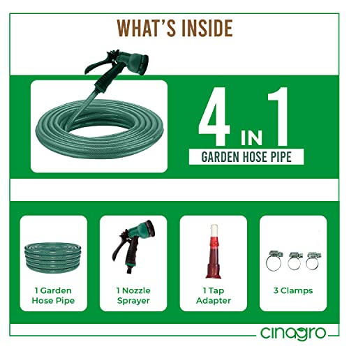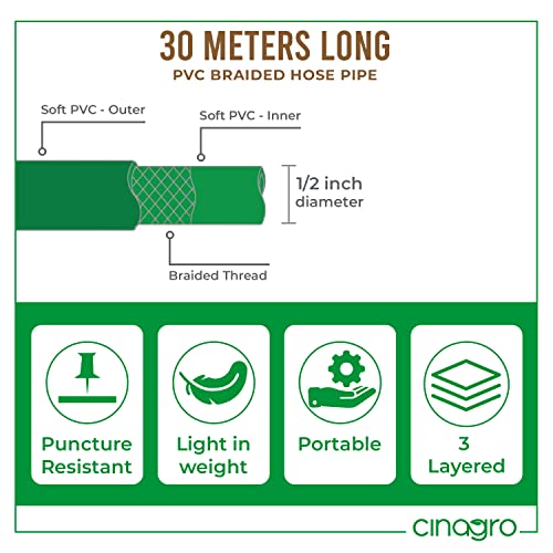 Maintaining a small garden is a trending hobby nowadays. Having cute plants in the garden increases the beauty of your space. Water is an essential component for plants to grow healthy. Some plants require more water and some require less. So, you need to take care of watering needs according to the requirement. To help you enjoy gardening, CINAGRO has introduced the Gardening PVC Braided Hose Pipe. The 1/2 inch wide hose pipe is available in multiple lengths. The hosepipe is made of three-layered heavy-duty PVC braided material for all weather conditions. Not just for gardening, the PVC braided hose pipes can be used for multiple applications such as outdoor watering, washing your vehicles, cleaning lawn or floor, and also for pet bath. Key Features: Construction: 3-layered heavy-duty PVC braided water pipe Applications: Use for gardening, car & bike wash, pet bath, floor clean, construction, sprinkling, agriculture, etc. Purpose: Helpful to maintain the moisture content in the soil / growing medium. Perfect leak-proof: Our garden hoses are completely leak-proof, have anti-rupture property Lightweight & durable: Our flexible garden hose is lightweight to help you carry it around easily.