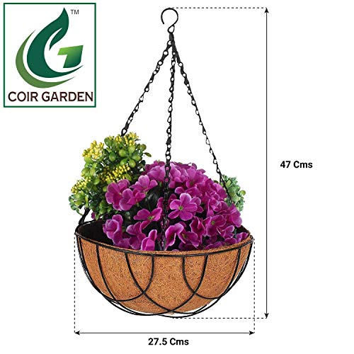 coir hanging baskets are made up of coir pots and metal baskets with chain.