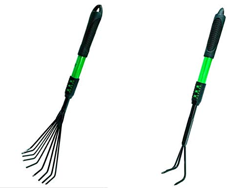 These telescopic garden tools have a soft comfort grip handle that is made of lightweight steel and heat-treated steel head Lightweight steel handles, rotate and extend from 62-cm to 100-cm Measures 62-cm length