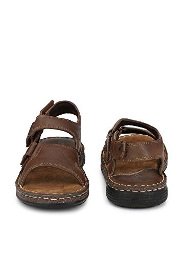 Men’s evergreen sandals with leather upper, decorative stitching n fabric lining. Fully cushioned insock for all day comfort and TPR outsole