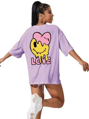 Create a nice impression in this loose t shirts for women stylish.This T shirt 100% pure Soft Cotton. This Oversized printed t-shirt has half sleeves.