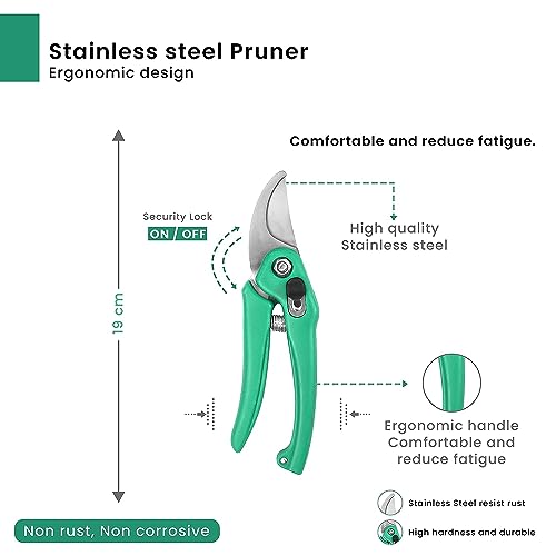 8.Built to last through all the seasons, pruning shear is a true investment in your garden. Both the blade and handle are corrosion and rust-resistant and perfect for indoor or outdoor storage.