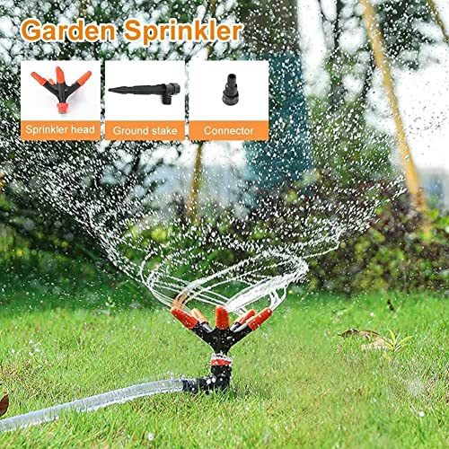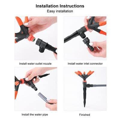 [Easy Installation] One second installation, just insert the sprinker into ground, pointy tip is easier for you to insert and more stable.Then connecting the water pipe.You can use 3 sprinkles together for larger irrigation area. Widely used in lawn, garden, green house, farm,and other irrigation work.