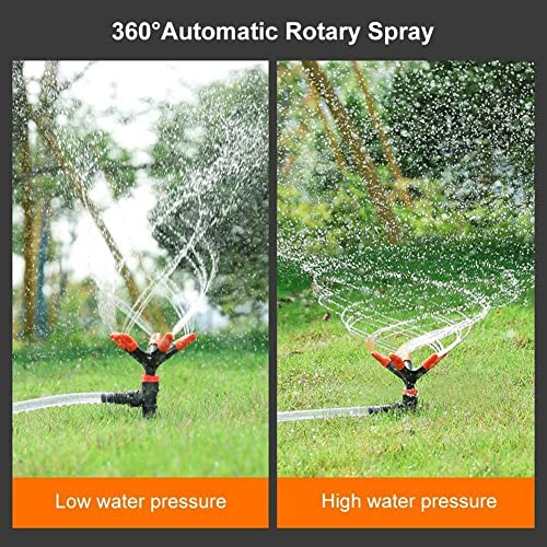 [Automatical Rotation] Driven by the pressure of flowing water ,three nozzles will automatically rotate. The rotating speed will change as the pressure level. The higher the water pressure, the water splash will higher and farther,the larger irrigation coverage.