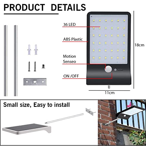 ➤EASY INSTALLATION — With light and motion sensors, this solar security light can automatically switch between Dark, Dim and Bright modes, changing with the environment. No cable or wiring is needed, making setup and take down easy and simple.