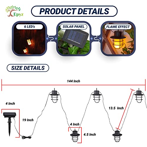 Epyz Solar fire Flame String Light Outdoor 5 LED Decorative Lighting Flickering for Garden, Home, Patio, Lawn, Party, Outdoor, Party Decorations Waterproof [ 12Feet, Warm Yellow, Pack of 1 ]