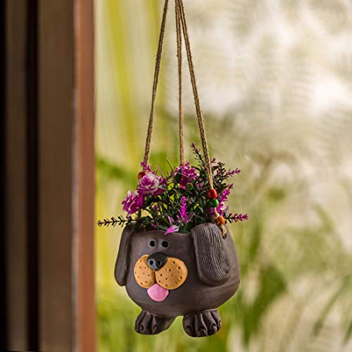 ExclusiveLane ‘Swinging Dog’ Terracotta Hanging Planters for Balcony Living Room (5.5 Inch, Brown) | Handpainted Flower Pots Hanging Pots for Plants Balcony Railing Garden Decoration Items
