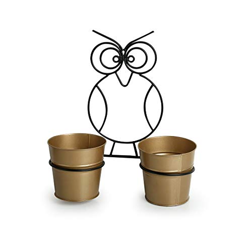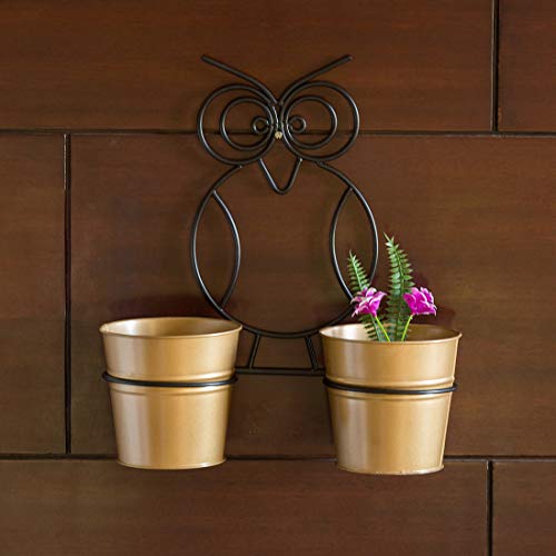 ExclusiveLane The Owl Buckets Metal Wall Planters Pot for Indoor Plants with Holder (Set of 2, Galvanized Iron) – Wall Mounted Planters with Stand Plant Containers Balcony Decoration Garden Décor
