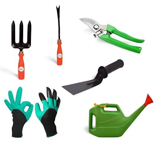 FADMAN Home Gardening Tool KIT (Garden Fork, Weeder, KHURPA, Watering CAN, German Pruner, Gloves-P)