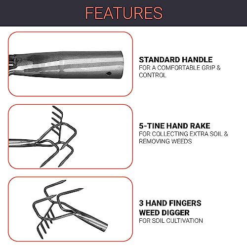 DURABLE CONSTRUCTION: The Culti-Rake is constructed with durability in mind. It is typically made from top-notch quality materials such as steel or stainless steel, ensuring strength and longevity. The sturdy construction allows for regular use in different soil types and garden conditions without bending or breaking.