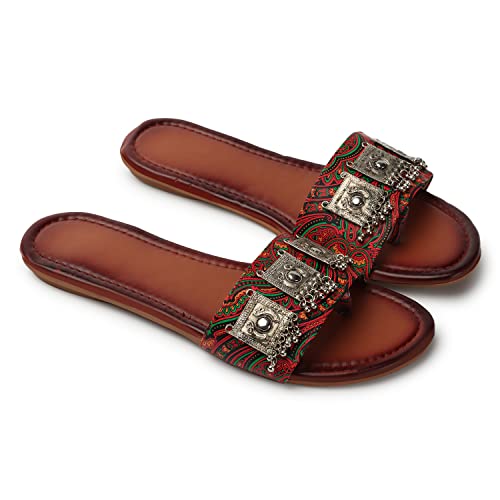 FASHIMO Women’s Ethnic Flats, Women’s Traditional Slip-On Slipper, Rajasthani Chappal Banjara Style