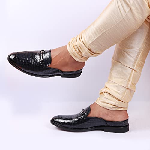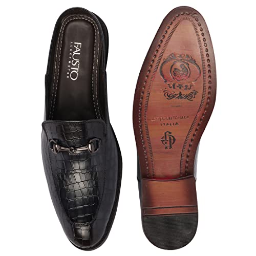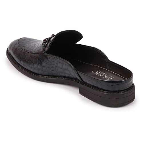 Fausto embossed leopard print design with horsebit buckle ethnic party back open slip on mules shoes style make them super comfortable and easy to wear, while the sole material makes for comfy walking. Pair with a wide range of dressy outfits in wedding, festive and evening. These Jutts go-to styling and it’s easy look you’ll love to wear.