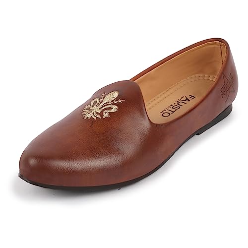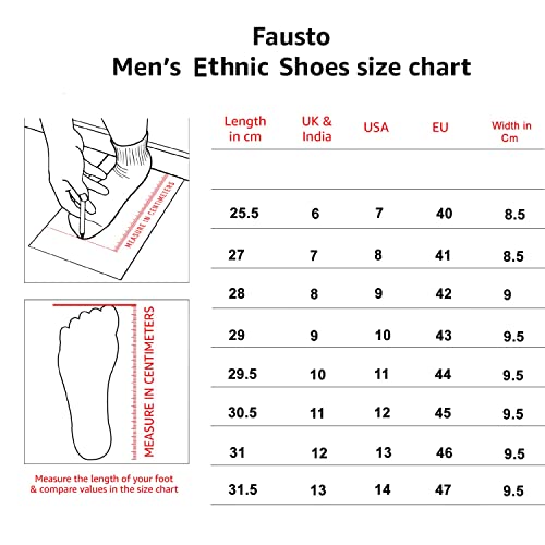 FAUSTO Men’s Ethnic Embroidery Juttis and Mojari for Wedding|Party|Occasions|Fashion|Outdoor|Indoor|Lightweight|Shoes with TPR Sole (6-13UK)