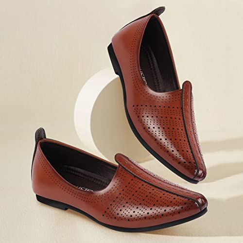 FAUSTO Men’s Laser Cut Design Broad Feet Ethnic Slip On Wedding Juttis and Mojaris