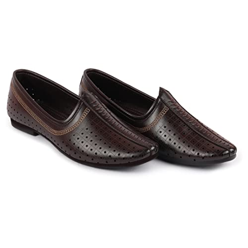 FAUSTO Men’s Laser Cut Design Stitched Ethnic Party Slip On Juttis and Mojaris