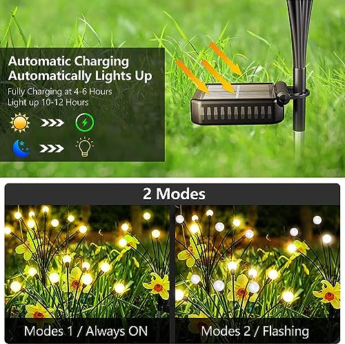 High-Efficiency Solar Panel: Solar Firefly lights feature a high-quality, waterproof IP65 solar panel and lampshade. Designed to withstand extreme weather conditions, they are built to last. With a built-in 1.2V/600mAh Ni-MH AA battery, these solar lanterns can provide 7-8 hours of illumination after a full charge, ensuring long-lasting beauty throughout the evening.
