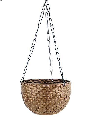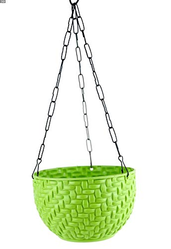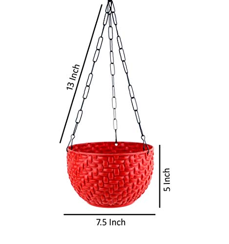 Go Hooked Heavy Plastic Wicker Hanging Basket with Metal Hanging Chain/Multicoloured Hanging Pots/Hanging Planters for Balcony, Garden, Home