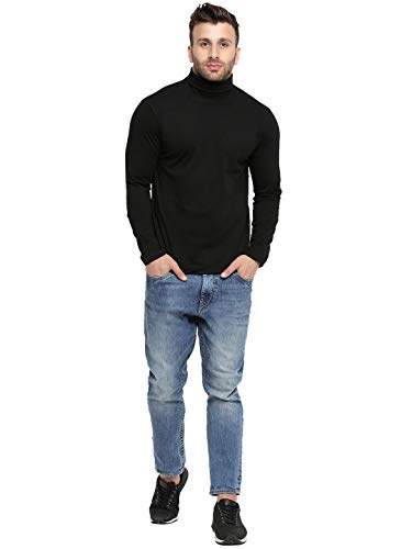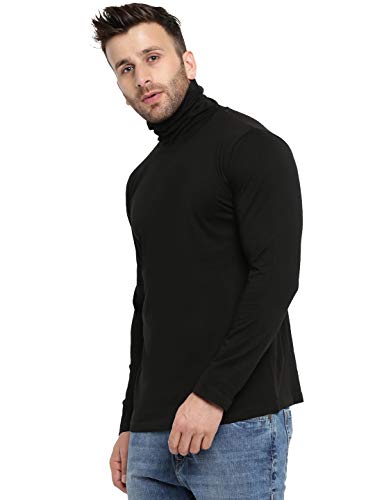 Gritstones Men Coral High Neck Cotton Solid T-Shirt