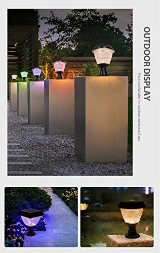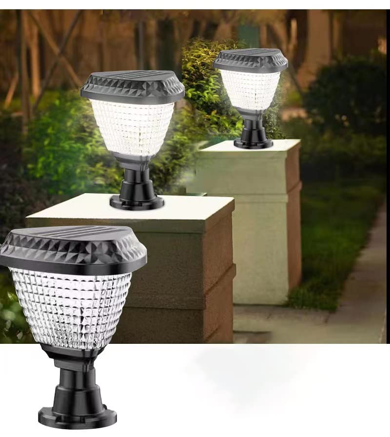 [ATTRACTIVE DESIGN]: Add a touch of style to your outdoor space with these attractive solar gate lamps. The triangle design and transparent covering create a special lighting effect when turned on, making these lights perfect for use on balcony, terrace garden, resorts, and more.