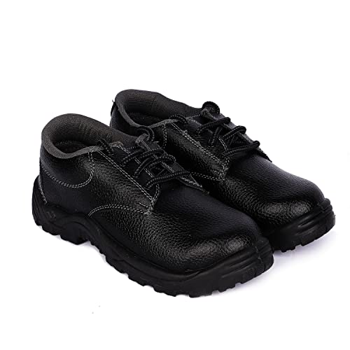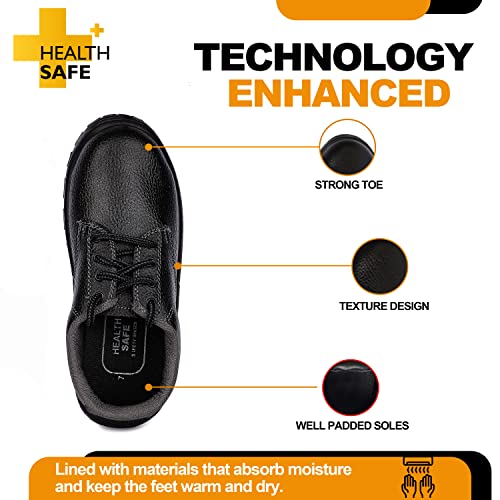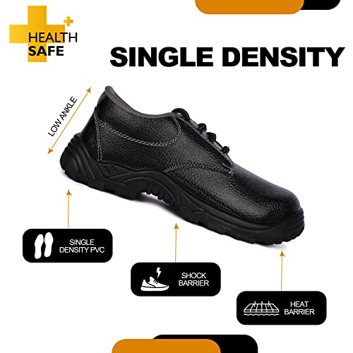 HEALTH SAFE Low Ankle Safety Shoes for Men & Women (Black), Light Weight for Industrial Work, Synthetic Leather Upper, Chemical Resistant, Waterproof, Rugged Anti-Skid Shoes