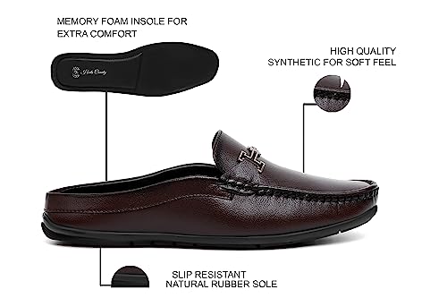 Comfortable and memory foam cusioned soft inside for extra comfort . Vegan Leather material, non-marking marking for the extra grip and comfort.Cushioned insole In Back Open loafers are a testament to the notion that you don’t need to compromise on comfort to achieve eleganceCushioned insole in Half Back Open loafers for men redefine Casual footwear by seamlessly blending elegance and comfortThese Buckle Casual Back Open Loafers Shoes For Men Supper soft & lightweight soles gives you a comfortable massage, relax yourselves while walkingLoafers made from breathable fabrics ensure proper airflow, keeping your feet cool and comfortableThe incorporation of TPR (Thermoplastic Rubber) soles in these Buckle Casual loafers brings a whole new dimension to comfort and durability. TPR is renowned for its robustness, flexibility, and slip resistance, making it an ideal choice for soles that can withstand various terrains and conditions. Whether you’re navigating city pavements or Office work Area or Meeting outdoor paths, TPR sole Men’s Buckle Formal loafers offer a steady grip and long-lasting wear.