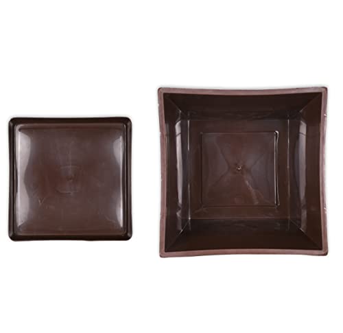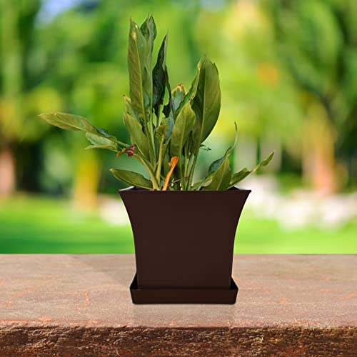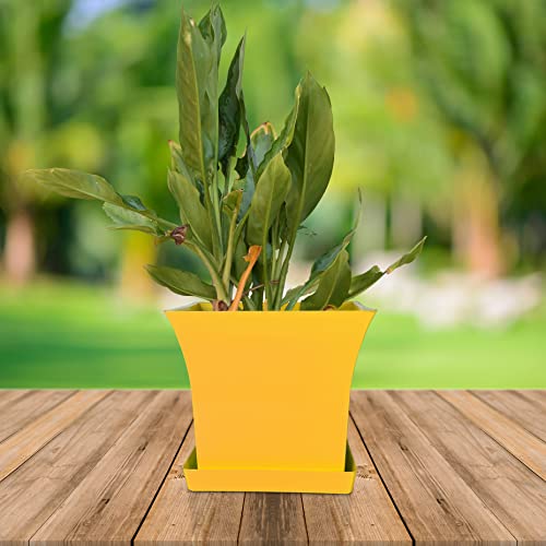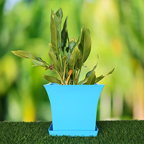 HINS Plastic Square Flower Plant Pot with Plate for 10 Inch Multicolor (Brown Yellow Blue Set of 3) for Indoor and Outdoor Gardening for Tool for Plants Garden Flowers Pot Gardening Gamla for Garden