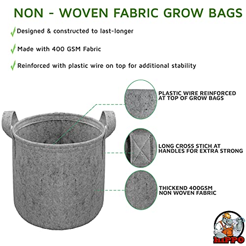 [PACKAGE] – Available in the combo pack of 3, 5 and 10, the HIPPO Grow Bag comes in three different sizes – 8 X 10 Inches, 10 X 12 Inches, 12 X 14 Inches.