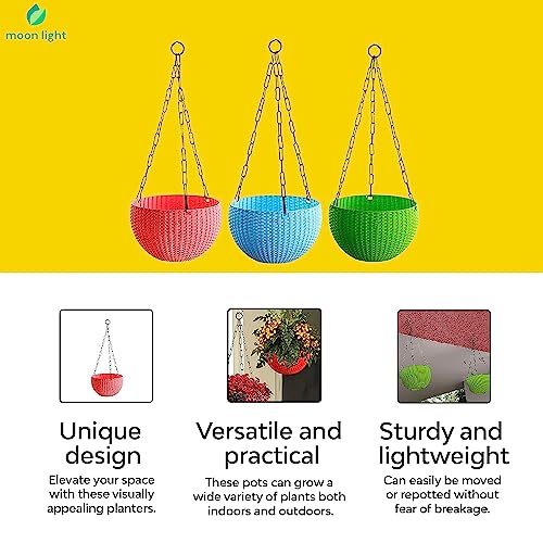 Compact and versatile plant hangers: Find great value in our compact plant hangers that are suitable for various spaces, including balconies, terraces, and lawns. Create a captivating display with these plastic hanging pots.