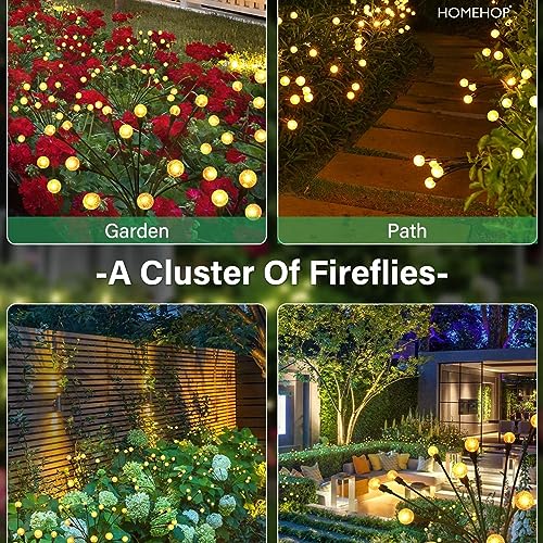 【User-Friendly Solar Lamps 】No installation or wiring required, simply plant them in the ground and turn on the switch. The warm white solar lights for balcony, patio, and lawn flash resembling cheerful little angels inviting the neighbors. Homehop LED solar light outdoor waterproof firefly lights beautifully enhance your garden,patio, lawn, and balcony complementing the starry night sky and creating a delightful atmosphere