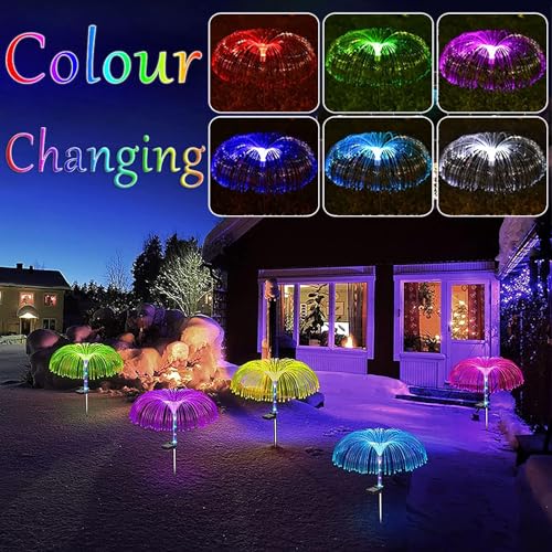 HVG TRADERS Garden Solar Outdoor Lights Decorative , 7 Colors Changing RGB Light Waterproof Flower Jellyfish Firework Decor for Garden Patio Landscape Pathway Yard Holiday Decor Description :- INDEPENDENT SOLAR POWERED :- Independent Solar Panel without cable, so there is no chance of short circuit. After upgrading, the fiber optic full section is luminous and light up all the way to the end of the fibers. Powerful solar panels make solar garden lights outdoor more like a glowing jellyfish. They stay on from dusk to dawn. 7 COLOR CHANDING :- Solar Flowers Garden Lights release beauty and charm by showing their gorgeous colors. High color rendering and the colors gradually change in sync, which neighbors love looking over here because it feels like Christmas. Especially if there’s a breeze, you can be creative with displaying. FINISHING TOUCH :- Fiber optic material and flower shape make the solar garden decorations unique or even automatically glow and change color at night by sensing the surrounding environment. If you can decorate in the garden, yard, patio, you will feel a stronger festive atmosphere at your party. MAGICAL ARTWORK :- As long as you spend two seconds just connect the sun light beam and the lamp body, whether it is sunny, rainy or snowy, enjoy 8-10 hours the advanced visual enjoyment adds to the colorful colors of life. Romantic lighting meets romantic you. CREATIVE DESIGN :- These beautiful solar lights outdoor decorative cannot be missed if you are a gardening lover. The jellyfish roaming in the ocean attracting everyone’s attention. Very suitable for amazing gift for Christmas, Mother’s Day, Valentine’s Day, birthday, Etc ,Night Glow Dimension :- Volu. Weight (Gm) :- 380 Product Weight (Gm) :- 230 Ship Weight (Gm) :- 380 Length (Cm) :- 37 Breadth (Cm) :- 10 Height (Cm) :- 5