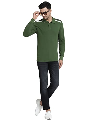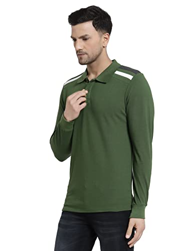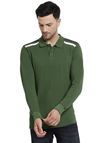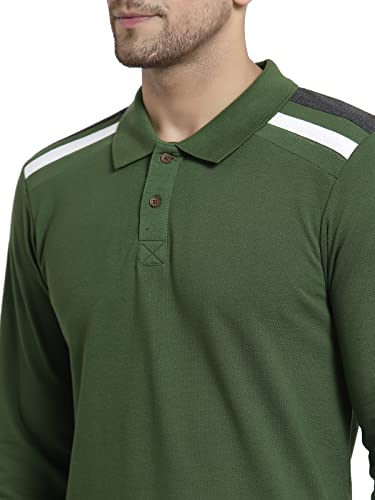 Kalt Men Full Sleeve Polo Neck Cotton Blend Shoulder Striped T-Shirt