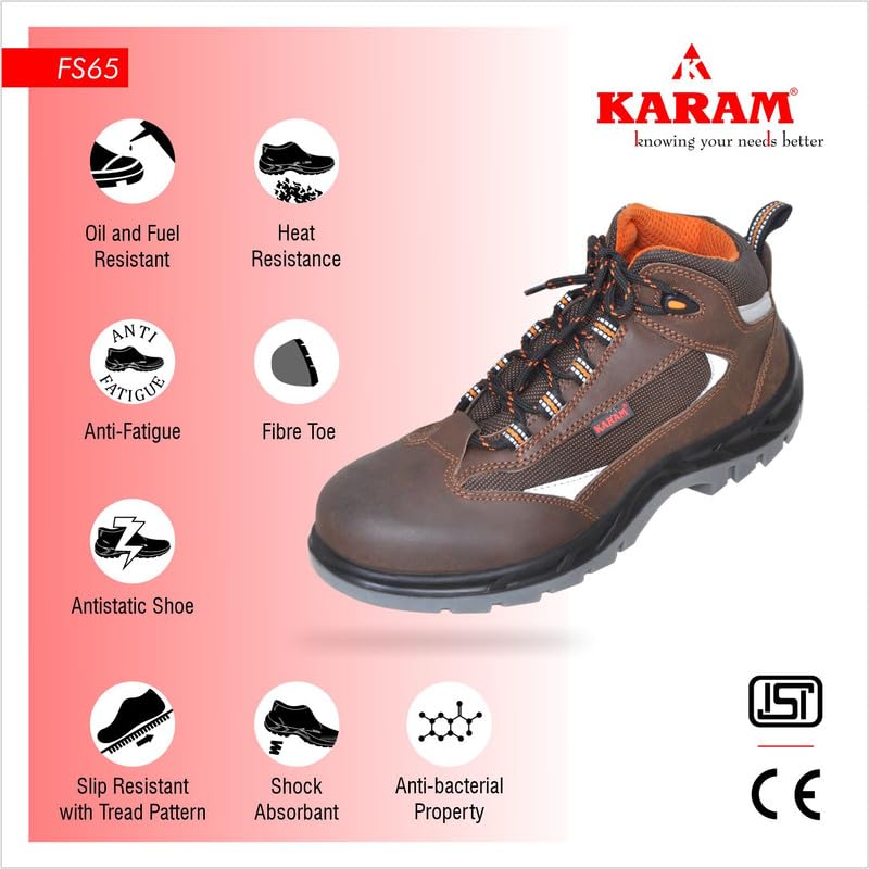 Stitching With Bonded Thread Which Make This Safety Shoes More Strong And Durable. Karam Safety Shoes Is Known For Their Excellent Grip, Comfort And Slip Resistance.