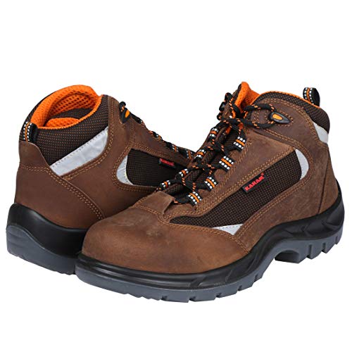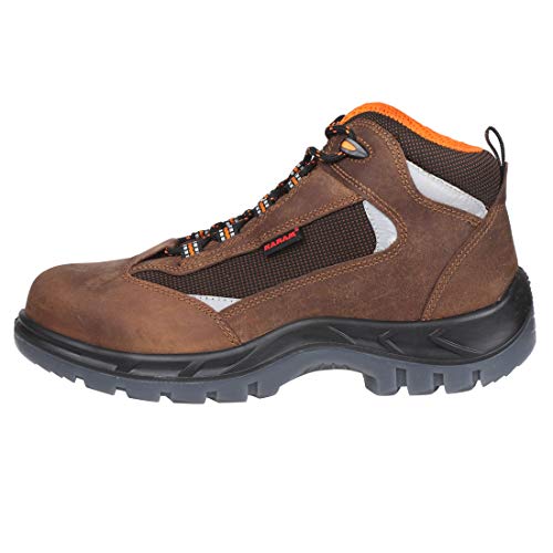 Upper – Buff brown crazy horse leather and codura brown; Lining – Orange spacer lining 3d fabric; Vamp Lining -Highly abrasion resistant fabric lining. Karam FS65 comes with Antistatic sole.