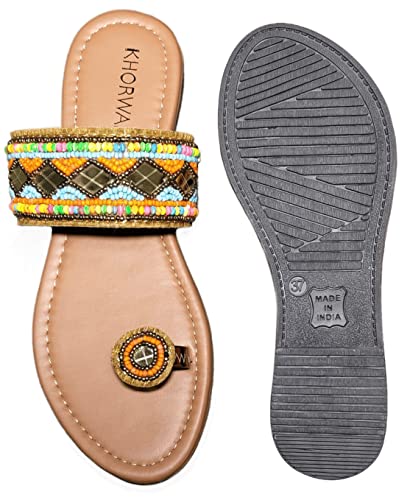 Make a note to get noticed with this ultimate pair of flat sandals for women. Crafted to perfection, this sandals footwear is made using quality material to assure superior comfort and unmatched style. Get a complete and ravishing look by wearing this pair of sandals. Rendered with the modern-day appeal, this marvelous pair for sandals for women is simply perfect for any occasion. These sandals are absolutely comfortable owing to their material and ergonomic design. It has been crafted to provide you with ultimate looks, unbeatable style and cozy comfort.