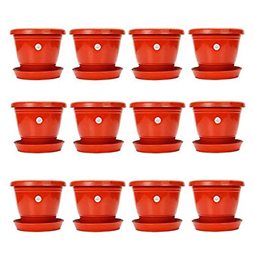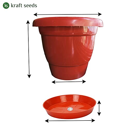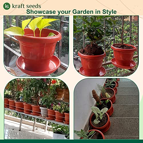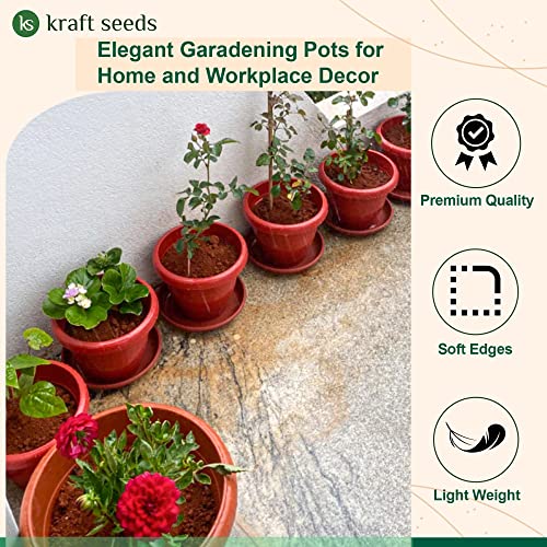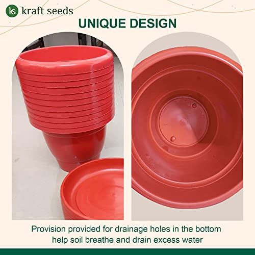 Kraft Seeds Gamla Planter Pots With Bottom Plates (12 Pcs, 8 Inch, Red) | Garden Pots for Home Garden Plants | Indoor Outdoor Balcony Flower Pots | Drip Tray Pots | Plastic Planters With Drain Holes